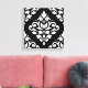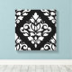 Scroll Damask Large Design (B) White on Black Canvas Print