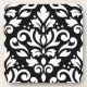 Scroll Damask Large Design White on Black Coaster