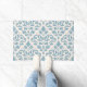 Scroll Damask Large Pattern Blue on Cream Doormat