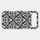 Scroll and leaf damask in a vintage style large pattern, with white detail on a black background.