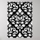 Scroll and leaf damask in a vintage style large pattern, with white detail on a black background.