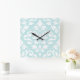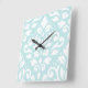 Scroll Damask Lg Design White on Duck Egg Blue Square Wall Clock