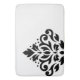 Scroll and leaf damask in a vintage style design in black detail off-set to bottom left on a white background.