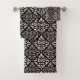 Scroll Damask Pattern Taupe Cream Black Bath Towel Set