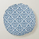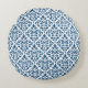 Scroll Damask Ptn Dk Blue on White Round Cushion