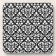 Scroll and leaf damask in a vintage style pattern, with white detail on a black background.