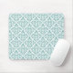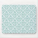 Scroll and leaf damask in a vintage influenced pattern, in teal colour detail on a background colour of your choice.