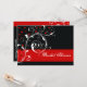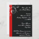 Elegant floral scroll leaf black, red flourish wedding bridal shower invitation, featuring white scroll leafs, swirls and curls and red dots on black background. There is a red band with your text to the bottom. Classy, stylish and chic design perfect for a winter wedding.