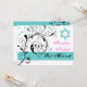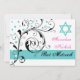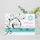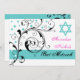 Scroll leaf black, white, aqua & Star of David Invitation