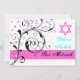 Scroll leaf black, white, hot pink & Star of David Invitation