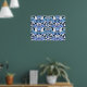 Digitalized, photo editing, transformed a photo image, into this Abstract, graphic design, with intricately, scrolled, leaf patterns-in vivid, colors of blue, green, black, and white.