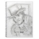 A black and white pencil sketch of Ebenezer Scrooge in his hat and jacket.