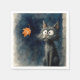 Scruffy Black Alley Cat With an Autumn Leaf Napkin