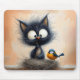 Scruffy Wide-eyed Cat With a Worm For a Bird Mouse Pad