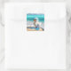 A fluffy white duckling stands on a sandy beach, wearing blue flippers and diving goggles