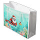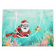 Celebrate Christmas with a breath of ocean calm. This elegant coastal watercolor design features Santa scuba diving underwater in a clear turquoise sea, surrounded by soft coral and gentle sunlight rays. The mood is peaceful, refined, and beautifully understated — perfect for coastal homes, beach holiday gatherings, waterfront celebrations, and warm-weather Christmas travel.