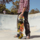 Retro style 80s graffiti spray paint artwork onto skateboards.