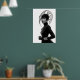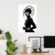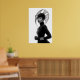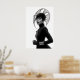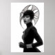 Make a striking statement with this captivating black and white art print, a true masterpiece of avant-garde fashion and artistic expression. This compelling frontal portrait features a woman of intense allure, crowned with an extraordinary, sculptural black hat that spreads outward with intricate, flowing lines and a subtle mesh texture, creating a mesmerising silhouette. Dressed in a sleek black turtleneck with long sleeves and elegant leather gloves, her minimalist attire provides a sophisticated canvas for the dramatic headwear and shimmering silver bracelets. Her pale skin, stark black lips, and piercing gaze create a mesmerising contrast against her dark ensemble and the pristine white background, emphasizing her powerful and direct presence. With a confident and poised stance, this artwork embodies a fierce, mysterious, and undeniably chic elegance. Perfect for modern living spaces, fashion studios, or any decor seeking a touch of unique sophistication, bold artistry, and a truly unforgettable visual narrative.