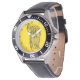 My husband loves the watch, he likes the dial, the graphics, the band, and it keeps perfect time.
