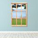 3 Dimensional Canvas Window Scene - Ocean Wouldn't you love to look out your window at the ocean? This sea view picture has a photographic print of grass, sea and sky, with green leaves creating a natural frame. Of course, since this is a window, you also have the wooden window frame creating 9 panels. The print is stretched on canvas over a real wood frame to give it 1.5 inch depth on each side, so this really will look like a window with a lovely scene outside.