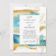 Delightfully modern and artistic, this unique wedding invitation has watercolor washes in blue with golden sand and painted sea life outlines scattered around the frame. It makes a lovely choice for beach or seaside weddings, destination weddings or weddings with a nautical theme. Modern handwritten text accents pair with an elegant serif typeface to convey your information with style and charm. Personalise the text template with your wedding details.