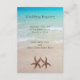 Sea and sand, two starfish wedding registry enclosure card. Blue ocean water is the backdrop for store information to enclose with shower, or engagement party invitations.