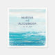 Sea Blue Beach Waves Coastal Watercolor Wedding Napkin