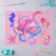 Decoupage/tissue paper with illustrations of sea creatures, including an octopus, starfish and colourful fish, in colours of pink and pastels.