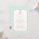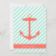 A coral coloured anchor silhouette is on a background of white and sea foam green diagonal stripes. The gender neutral colours make these invitations great for anyone keeping the gender a surprise.