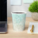 A watercolor texture in the soft shades of sea and sand is the background for marine elements such as turtle, starfish and seashells that are enhanced with waves of sea foam to create the pieces of this wedding suite. The wedding paper cup shown here features the above turtle plus a template to easily add your thank you message, names and wedding date. Search ID837 to see all the coordinating pieces in this set.