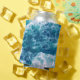 Colourful blue, sea green, teal and white abstract fantasy design of sea waves with foam.