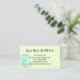 Custom business cards with sea glass in shades of green. Black text is printed over yellow-green background with a stack of pretty sea glass in the corner. Reverse also has a design in shades of green. Use for home health care, nursing, spa, or any profession requiring a calming and serene vibe. The size may be changed, but be aware that the design may be changed and text size reduced - what you see is how it will print!