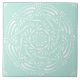 This white mandala sits on a light blue-green background. The colours are serene and creative. Part of the Dagrewi Mandala Collection.