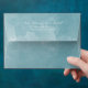 Elegant sea glass blue watercolor wedding envelope with beautiful hand-drawn botanical monogram inside with the initials of the couple in calligraphy. Watercolor wash in a variety of sea glass blue and turquoise teal hues. Design with option to add or erase name(s) and address on top back flap. NOTES: 1) The default size A7 fits our 5" x 7" invitation cards, please make sure to select the right size for your cards before ordering (envelope measurements explanation on product page left bottom area), 2) Option to choose paper type from basic paper or linen. 3) option to erase the monogram inside by selecting "customise further" at the end of the template boxes. Part of our "Sea Glass Watercolor Botanical Monogram Wedding" Collection, with a variety of coordinating products available. Visit the entire collection with this link: https://www.zazzle.com/collections/sage_sea_glass_watercolor_botanical_monogram-119107855901335805