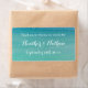 Custom Sea green beach wedding wine or spring water bottle labels. Personalised elegant waterbottle sticker template with aqua turquoise blue ocean background. Fancy script typography for names of bride and groom and thank you message. Use as classy table decoration or thank you favour for guests at the party. Includes name or monogram plus date of marriage. Maritime watercolor painting design. Also good for fancy engagement or anniversary gathering. Create your own natural mineral water labels with this shiny DIY template. Customisable background colour.