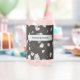 Various sizes of sea green, grey and white glass chips retro Terrazzo pattern on a dark grey background is featured on this trendy 16oz. drinking glass resembling a beverage can. Change the name to make it yours using the Template provided. To edit and change font style-color-size and more-- use the easy Design Tool. Made in the USA. See "About" this product for more information. ===>Hand wash only.<===