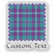 Sea green, purple and blue tartan sample swatch. Custom text.