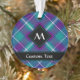 Sea green, purple and blue tartan design. Seamless pattern. Custom text and monogram.