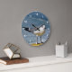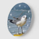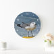 A wall clock with a photograph of a Sea Gull standing on a pier