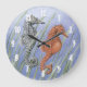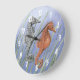 Charming sea horses float along throughout the day on this ocean blue clock with white numbers that can be removed if you would like.
