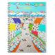 Colorful Sea Isle City, New Jersey promenade spiral notebook. Design includes the gazebo, bicycles, banner plan, turtles, umbrella, flip flops and much more! Perfect notebook for anyone the loves the fun resort town of Sea Isle City, NJ! This notebook was created from local artist, Chris Ambrose's original acrylic painting.