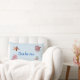 Sea la vie lumbar pillow with red coral, star fish, and nautilus on soft sea blue background.