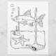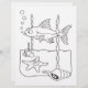 Underwater scene with fish starfish and shell cartoons, line art for colouring book page.