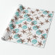 White Christmas gift wrap with tropical sea life theme. Brown starfish / sea stars, sea horses, and aqua blue ornaments pattern on this quality roll of wrapping paper.