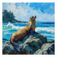 A digital illustration of a sea lion basking lazily on the rocky shore.
