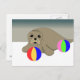 A cute cartoon drawing of a sea lion playing with colourful beach balls.. Add a saying if desired.