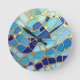 Sea of Waves Blue and Gold Mosaic Fine Art Round Clock