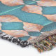 A quality printed throw has its advantages. This is a much finer weave throw than its loopier cousins, and though lighter, it is worth the investment for custom room accessorizing. The back is much prettier than the typical brown, and the fringe on the long sides very vivid, the selvage nicely done. Before photographing, I washed the throw in cold water, delicate, with a thicker woven throw the same size. On tumble dry low, this throw was dry in half the time as the other. This is a very practical quality if you use throws for furniture covers or to wrap up in frequently. The sleekness of the fabric makes it a great layer for accenting or protecting without the feeling of sitting on too much stuff. Perfect for napping or when you feel a light chill coming on. The color printing is beautiful and on this fabric, matched the design and color of my Photoshop image. This is an advantage for blending room fabrics and colors. The fringe on the short sides prints the colors from the design image and therefore varies from the side fringe. I streaked a white fractal line through the plaid pattern to give the illusion of weaving. This printed as crisp as an illusory thread, and put some white in the short side fringe, showing another advantage of print vs loomed- for artistic purposes, line lines, detail, and color integrity can be planned and preserved. My loomed throws have color limitations and more of a needlepoint texture. Print throws reproduce an exact image. The throw felt a little stiff straight out of the package, but this went away in the first delicate wash. Of course I searched the wash water for ink or bleeding and there was none.