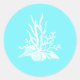 Lovely wedding envelope stickers, with graphics of white sea shells and coral, on a aquamarine background. Lovely way to finish off your wedding invitation envelopes for your beach wedding. Matching wedding products available, see links below.