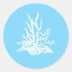 Lovely wedding envelope stickers, with graphics of white sea shells and coral, on a light blue background. Lovely way to finish off your wedding invitation envelopes for your beach wedding.